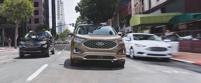 It's powered by a 2.7L V6 EcoBoost® engine that delivers 335 horsepower and 380 lb.-ft. of torque* coupled with a performance-tuned eight-speed automatic transmission. The 2020 Edge ST has road-gripping all-wheel drive, Ford Performance tuned suspension and race-inspired paddle shifters. Its standard leather-trimmed seats include supportive bolsters that help anchor you in tight turns. Topping it off is a striking grille with gloss black-painted mesh and prominent ST logo.