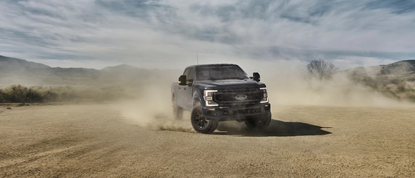 Outfit a Super Duty® 4x4 Crew Cab with the available Tremor Off-Road Package and make the off-road performance of today's premier heavy-duty pickup even better. * Choose the available 6.7L Power Stroke® Turbo Diesel or the available 7.3L OHV gas V8, each with top-rated horsepower. ** The package includes 35-inch maximum-traction tires and off-road tuned front and rear suspension (including custom 1.7-inch twin-tube dampers), as well as all-terrain handling features like selectable Rock Crawl and Trail Control™ modes. Available on LARIAT, King Ranch® and Platinum (F-250 and F-350 SRW).