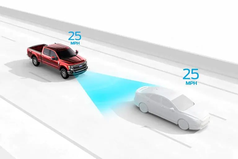 If you pull a large trailer with your Ford Super Duty,® an enhanced version of available BLIS® (Blind Spot Information System) with Cross-Traffic Alert is offered especially for you. It provides coverage for not only the truck you’re driving but also the trailer you’re towing. The system supports trailers up to 33 feet long.
