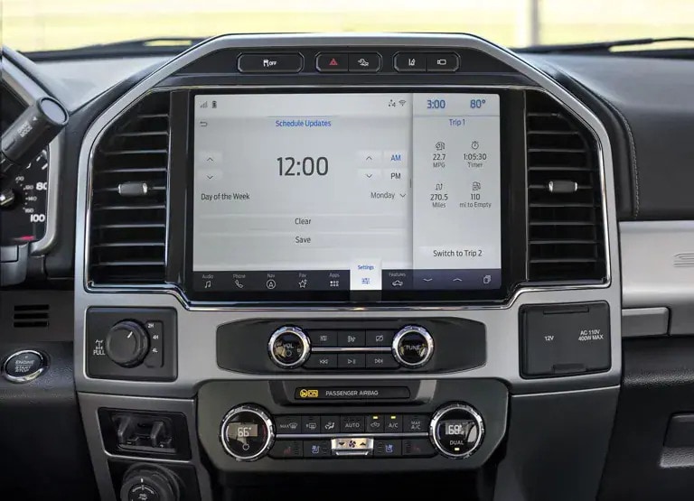 Built on the heritage, hard work and innovation of the legendary King Ranch,® this trim adds unique panels, woodgrain appliqués, unique Kingsville Antique Affect leather seats and branded running W’s throughout the interior. The King Ranch interior also offers available heated seats and features dual rear-facing powerpoints for easy charging.